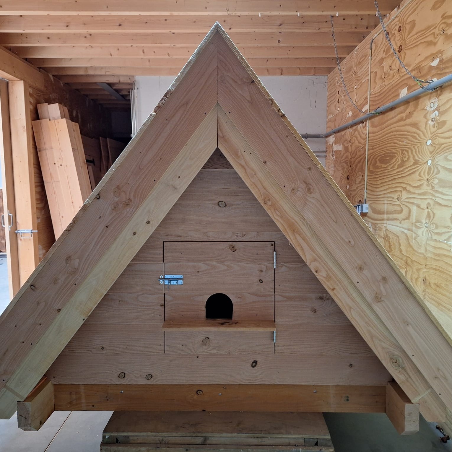 De wanden van de til zijn dichtgezet tot ongeveer 5 cm boven maaiveld. Zo kunnen muizen en eventueel kleine marterachtigen ín het stalletje. Deze kunnen niet naar de verblijfplaatsen op de zolder; die zijn enkel toegankelijk via twee aparte luiken. Voor de boerenzwaluwen zijn kommen aangebracht tussen de plafondbalken. De boerenzwaluwen kunnen de stal in via het open raam in de deur. Ook zijn er huismuskasten ingebouwd.