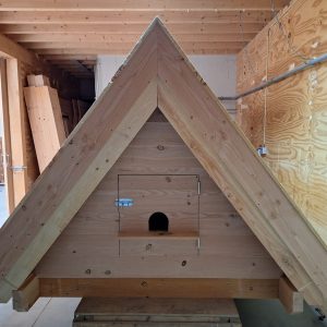 In overleg met de gemeente is besloten één object te plaatsen, gebaseerd op onze uilentil ‘Noctua’ en de eerder geplaatste faunastal in ‘s Gravenmoer. We hebben de Noctua al vaker uitgevoerd in combinatie met vleermuisverblijfplaatsen. Het verschil met de Fladdertoren in Nijmegen en de Noctua is dat er naast vleermuizen ook huismussen, boerenzwaluwen en eventueel grondgebonden zoogdieren gebruik van kunnen maken.